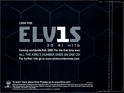 ![]() INLAY WITH ADVERTISING FOR ELV1S 30 #1 HITS ON BACK